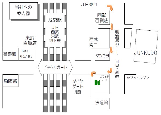 1.池袋駅東口より出たら信号は渡らず明治通りを目白方面へ歩く。